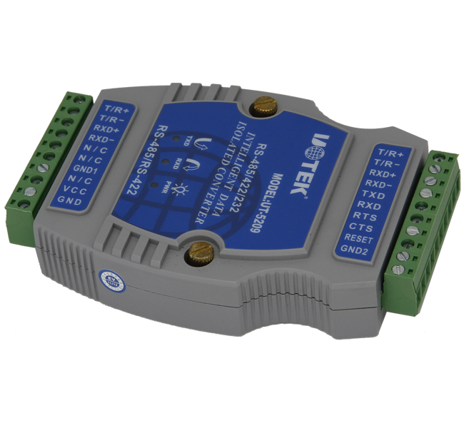 UT-5209用來連接計算機系統和多個相同設備之間的通信,它內部包含微處理器,每個UT-5209可以設置一個獨立的地址,計算機可以通過UT-5209單獨和某個設備進行通信,使用戶可以方便的構建485