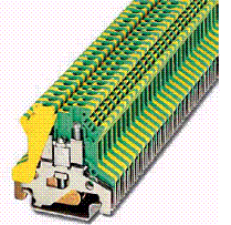 雙出線接地端子的黃綠相間封閉外殼具有與UK-TWIN 端子相同的輪廓特征,使其可與所有UK-TWIN 系列的端子和諧地相鄰排列。使用LB... 和ISSBI 10-6 橋接件可穿過接地端子外殼中央的凹陷處對位于