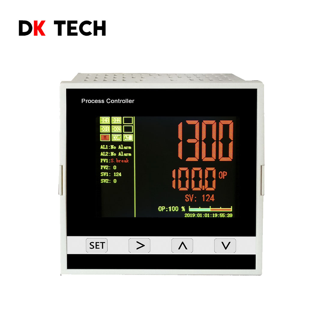 產品簡介DK2000 為四回路位式控制儀表,測量精度高,具有4路位式控制功能,也可選擇一路變送輸出或標準MODBUS RTU 通訊功能。液晶同屏顯示四回路的全面信息和報警功能。人性化設計UI設計,客戶更能方便的使用上手操作。 本溫控儀表采用OLED液晶設計,