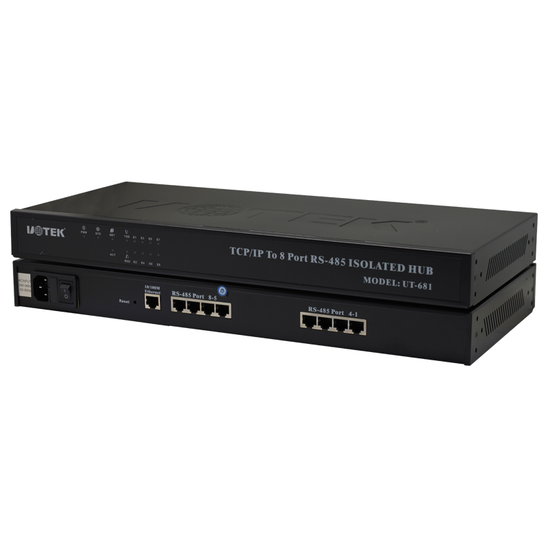 宇泰 10/100M TCP/IP轉8口光電隔離RS-485(HUB) UT-681