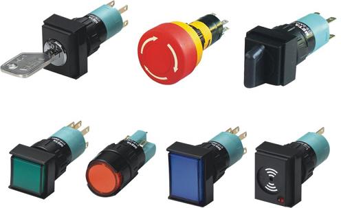 產品簡介:我們的產品涵蓋16 /22 25 30 mm指示器與控制開關等,包含指示燈、蜂鳴器、押扣開關、照光式按鈕開關、鑰匙開關、選擇開關、緊急開關等產品.