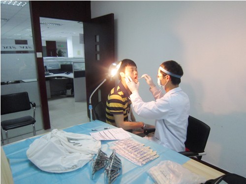 2013年4月20日周六,合作醫療機構的醫生攜帶檢查設備,上門到公司總部為員工進行各項體檢項目,體檢內容有內外科、血常規、心電圖、B超等十多項檢查項目,體檢員工自覺有序的排隊參加各項檢查,并不時提出相關健康問題,醫生給予相應的解答和建議,醫院很貼心地為我們準備了早餐,在檢查完畢后可自行到餐廳就餐,為我們空腹來體檢的同事們提供了良好的后勤保障。