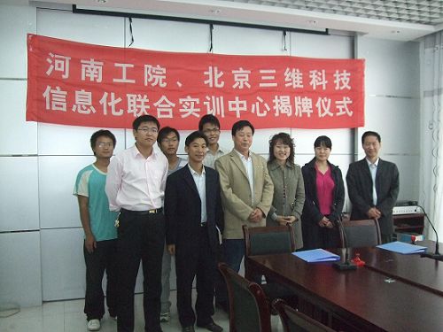 2009年10月30日上午,北京三維力控科技有限公司與國家示范性高等職業院校河南工業職業技術學院共建的聯合實訓中心正式揭牌。北京三維科技有限公司向河南工業職業技術學院提供最新版本的“力控®ForceControl6.1”通用版組態軟件,并提供配套學習用書、工業案例等相關教學資源,該聯合實驗室將成為力控科技在南陽成立的南陽特約培訓中心,充分表明了力控科技注重專業人才培養的決心。校方對此次合作非常重視,國家級教學團隊帶頭人、機電工程系韓全立主任,機電工程系秦主任及院辦白主任等與力控科技鄭州辦事處代表共同出席了揭牌儀式。