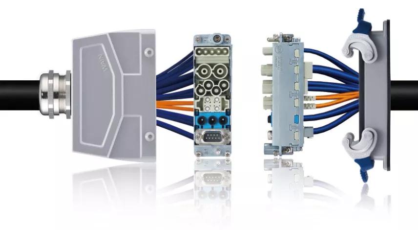 WAIN 模(mo)塊組合型連接器,能夠完美(mei)整合電力、信號、光纖、流體(ti)連接!廣泛運用于(yu)各種大型生產設備中。