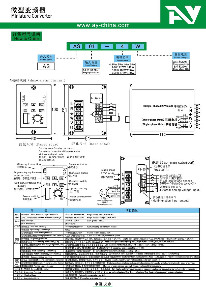 25W 90W 120W 200W 400W小變頻器 上海艾彥實業有限公司