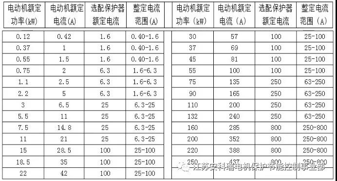 注:>250kW的低壓電動機,額定電流小于800A時均可選用800A等級的電動機保護器。