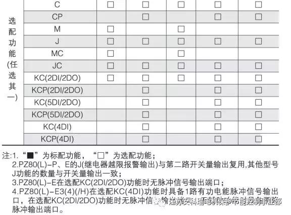 1、“■”為標配功能,“□”為選配功能。