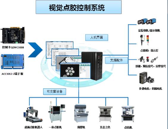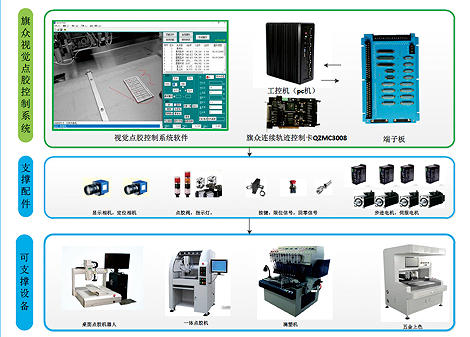 QZDJ1000是旗眾智能耗時多年開發的全功能視覺點膠,滴塑,噴涂,五金上色通用控制器平臺,該控制器是CAD繪圖+機器視覺+運動控制+數據庫管理在點膠行業里的完美結合,示教更直觀,簡單,運行速度更快,更平穩,借助視覺定位,匹配,糾正,實現普通系統無法比擬的優勢。