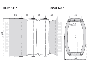 1. 防碎屑設計,無底切和邊緣 2. 圓滑的外形 3. 大填充空間,內高最高達73毫米 4. 隱藏的針/孔連接和止動器 5. 兩側可彎曲的“RBR”是標準選擇 6. 蓋子可沿外徑拆除 7. 安裝架可選配去應力元件 8. 可進行內部分隔 9. 可選用導槽 可提供內寬 Bi: 140 mm 可提供彎曲半徑 R: 140 - 350 mm 螺距: 56 毫米/鏈節 = 18 鏈節數/米 RX56系列適合以下應用類型: 垂直:懸掛應用,豎直應用 水平:架空應用≤ 2米,滑動應用 圓周運動:可用于旋轉應用,可能要求改裝(旋轉角度超過180°往往要求機加工改裝) 適合使用RX 56系列的場合