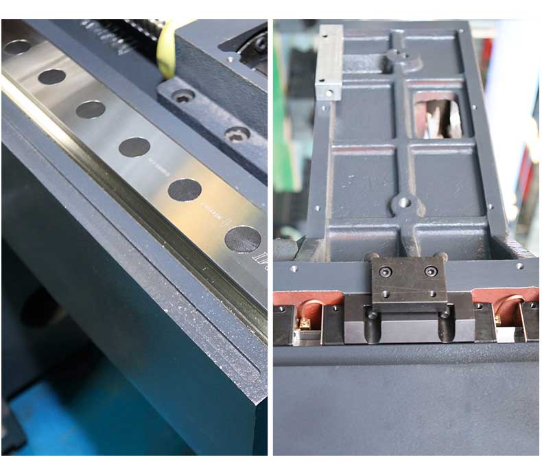 采用全封閉刀庫的優點,保證刀庫的使用壽命,減少了換刀故障,延長主軸的使用壽命,確保了加工的精度,鑄件內部采用強勁的加強筋,分布合理,確保床身的穩定與剛性,采用三軸絲桿,確保加工精度。采用滾柱型線軌,與導軌接觸面積廣,承受負載大,增加加工剛性,加工穩定性。