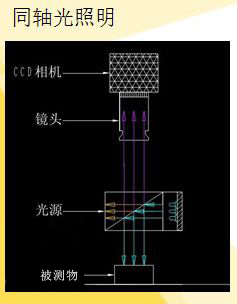 同軸光主要用于檢測反光程度很厲害的平面物體,比如玻璃,同軸光源能夠凸顯物體表面不平整,克服表面反光造成的干擾,主要用于檢測物體平整光滑表面的碰傷、劃傷、裂紋和異物。