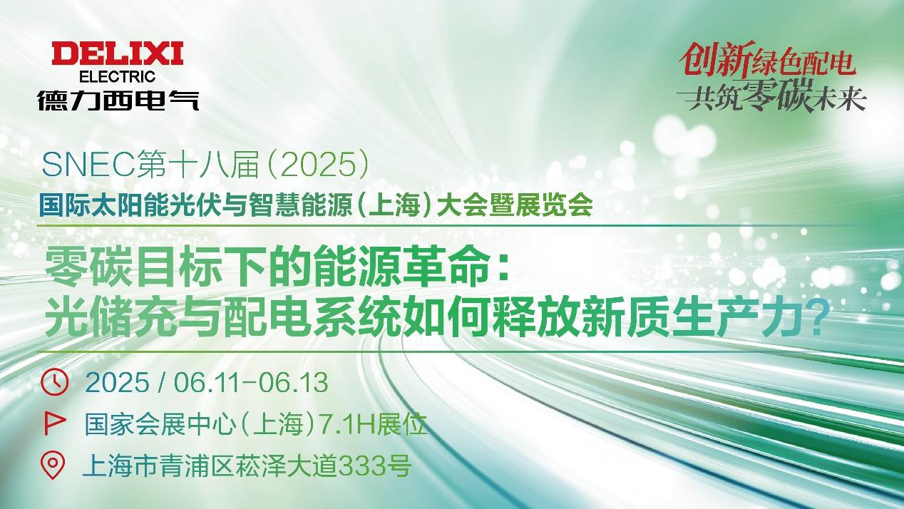 當碳中和成為全球共識,當新能(neng)源革命重塑產業(ye)格局(ju),一場關乎(hu)人類命運的技術盛宴正在(zai)東(dong)方啟幕。2025年6月11日-13日,第18屆SNEC國際太陽能光伏與智慧能源展(上海)將匯聚全球4000+頂尖企業、來自95個國家和地區的行業精英,以“光儲充一體化”為核心命題,共繪零碳未來的技術圖譜。在這場全球能源變革的“達沃斯論壇”上,德力西電氣將以“創新者、領航者、變革者”之姿,攜戰略級新品、全場景解決方案與生態品牌思維強勢登陸7.1H館|C160展位,詮釋中國制造的綠色轉型密碼。