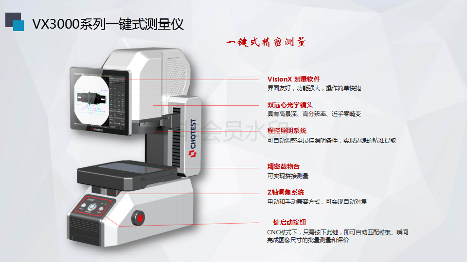 隨著科學技術的不斷進步,工業現代化不斷朝著自動化、智能化、數字化方向發展,傳統測量儀器如投影儀、影像測量儀、工具顯微鏡、輪廓儀、游標卡尺、千分尺等,在尺寸輪廓測量時面臨著諸多如“測量對象需要定位或原點定位費時、批量測量操作時間長、不同測量人員導致測量結果不同、數據統計管理繁雜等”一系列的弊端,已經難以滿足現代工業生產過程中有關高精度、高效率、高可靠性的測量需求。為滿足現代化工業測量需求,中圖儀器VX3000系列順勢而生!