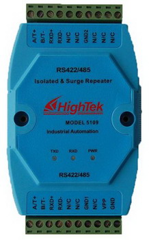HighTek HK-5109光電隔離型接口轉換器可以為點到點、點到多點的通信提供可靠的連接,點到多點每臺中繼器可允許連接128RS-422RS-485接口設備,數據通訊速率300-115.2KBPS帶有電源指示燈及數據流量指示燈可指示故障情況。