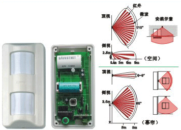 室外無線微波紅外空間/幕簾三鑒探測器 型號:JY-SKY-DL L2 全球首創技術。 無線微波紅外復合分析。 抗強光(≥100萬Lux)、大風、小動物及各種惡劣氣候。 微波頻率:2.45GHZ/10.525GHZ 探測范圍:9m×9m 8m/6° /85° 發射距離:150m 發射頻率:315/433MHZ 內置電池連續使用壽命2年。