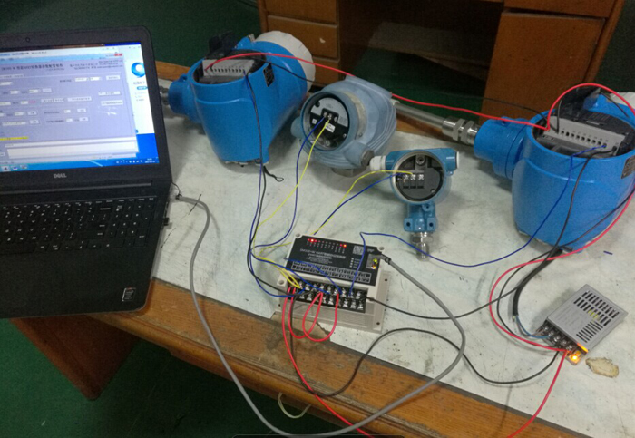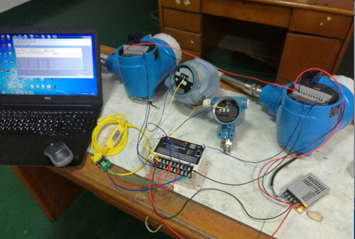 SM100-W 同時接流量計,及液位計,及壓力等 HART智能儀表通訊測試 1.接RS485接口實物圖如下: