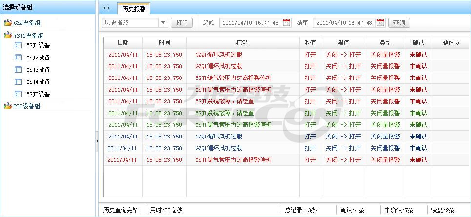 協同方式的的可視化工具 軟件提供豐(feng)富的(de)(de)(de)功能復合(he)組(zu)件,復合(he)組(zu)件通(tong)過(guo)后臺(tai)標準(zhun)化接口能夠實(shi)現多個(ge)(ge)組(zu)件間的(de)(de)(de)內部(bu)對象(xiang)化操作(zuo),來完成幾(ji)個(ge)(ge)組(zu)件的(de)(de)(de)協(xie)同工作(zuo),組(zu)件具備豐(feng)富的(de)(de)(de)方法、屬性,通(tong)過(guo)腳本可靈(ling)活的(de)(de)(de)進行控(kong)制,也提供標準(zhun)的(de)(de)(de)趨勢曲線(xian)模板方便快速實(shi)現工程制作(zuo)。 提供了“類excel”操作方式的報(bao)(bao)表(biao)工具,向導方式制(zhi)作常見生產報(bao)(bao)表(biao)(日報(bao)(bao)表(biao)、月報(bao)(bao)表(biao)、年報(bao)(bao)表(biao)等(deng)),也(ye)可靈活的制(zhi)作各類復雜格式報(bao)(bao)表(biao),完成對實(shi)時(shi)、歷史和統(tong)計數(shu)據的查詢、顯示、打(da)印和輸(shu)出。 提供多(duo)種分析曲線(xian)(xian)組(zu)件,包括(kuo)趨勢曲線(xian)(xian)、XY曲線(xian)(xian)、溫(wen)控(kong)曲線(xian)(xian)、餅圖、棒圖、溫(wen)控(kong)曲線(xian)(xian)等(deng),曲線(xian)(xian)和報表組(zu)件不僅可以(yi)展現力控(kong)實時歷史數(shu)據庫(ku)的數(shu)據,而且可以(yi)與(yu)典型(xing)的如MySQL、SQL Server、Oracle、 Access等(deng)關系數(shu)據庫(ku)進行(xing)數(shu)據訪問與(yu)查詢。