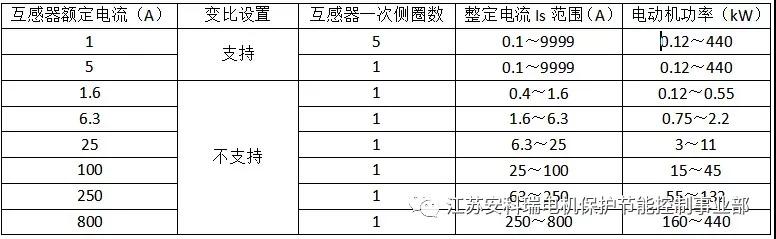 注:>250kW的低壓電動機,額定電流小于800A時均可選用800A等級的電動機保護器。