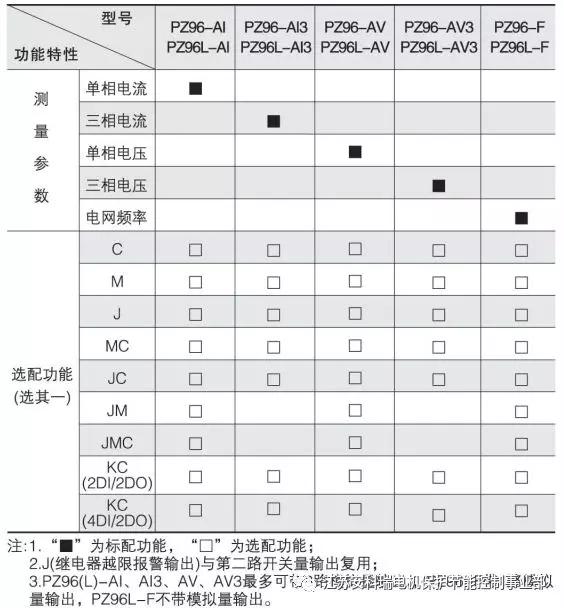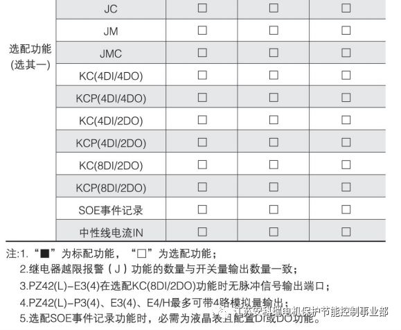 1、“■”為標配功能,“□”為選配功能。