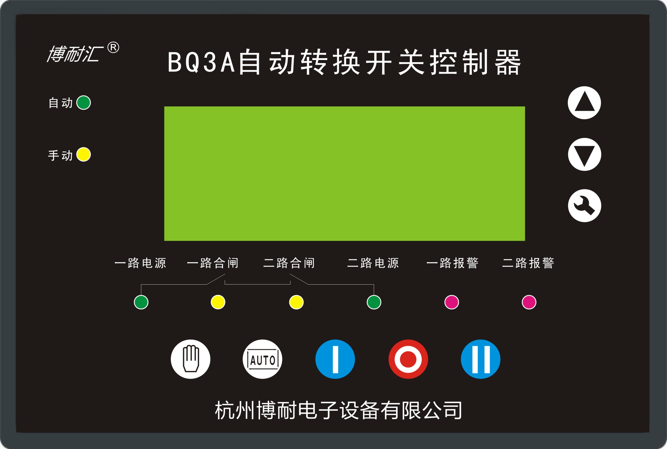 BQ3A自(zi)動(dong)(dong)轉換(huan)開(kai)關控制器(qi)是一(yi)種(zhong)自(zi)動(dong)(dong)化測(ce)量、大屏幕LCD漢(han)字顯示為一(yi)體(ti)的(de)智能(neng)兩(liang)路(lu)電源切換(huan)系(xi)統。是雙電源自(zi)動(dong)(dong)切換(huan)的(de)理想產品,在與低(di)壓空氣斷(duan)路(lu)器(qi)配套使用后(hou),特別適合于(yu)兩(liang)路(lu)低(di)壓進線側的(de)自(zi)動(dong)(dong)轉換(huan)和保(bao)護。 產(chan)品具有結構(gou)緊湊、電路先進、接線簡單,可靠性高,操作機構(gou)不管是(shi)塑殼(ke)斷路器,還是(shi)框架斷路器,還是(shi)CD2的電操,都(dou)可與之配套。可廣泛(fan)應用于電力(li)、石油、化工、煤炭、冶金、鐵道(dao)、市政、智能大廈等行(xing)業、部門(men)的電氣裝置、自動控制以及(ji)調試系(xi)統。 BQ3A自動(dong)轉換(huan)開關控(kong)制器(qi)(qi)(qi)的(de)執(zhi)行部件可以是框架式空氣斷路器(qi)(qi)(qi)也可以是塑殼斷路器(qi)(qi)(qi),兩臺斷路器(qi)(qi)(qi)不用(yong)加(jia)裝適配(pei)器(qi)(qi)(qi),也可以不需要欠壓(ya)脫(tuo)扣器(qi)(qi)(qi),控(kong)制器(qi)(qi)(qi)不需要外接直流電(dian)源,直接對(dui)兩路供電(dian)狀態進行檢測,自動(dong)控(kong)制完(wan)成兩路電(dian)源的(de)自動(dong)轉換(huan)。