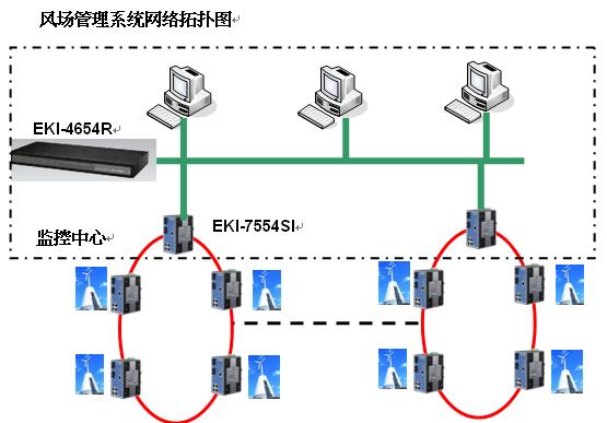 客戶經過了全面的考察后最終選擇了研華的EKI-6554SI 和EKI-4654R作為風場管理系統以及風機遠程監控系統網絡架構交換機主干設備。