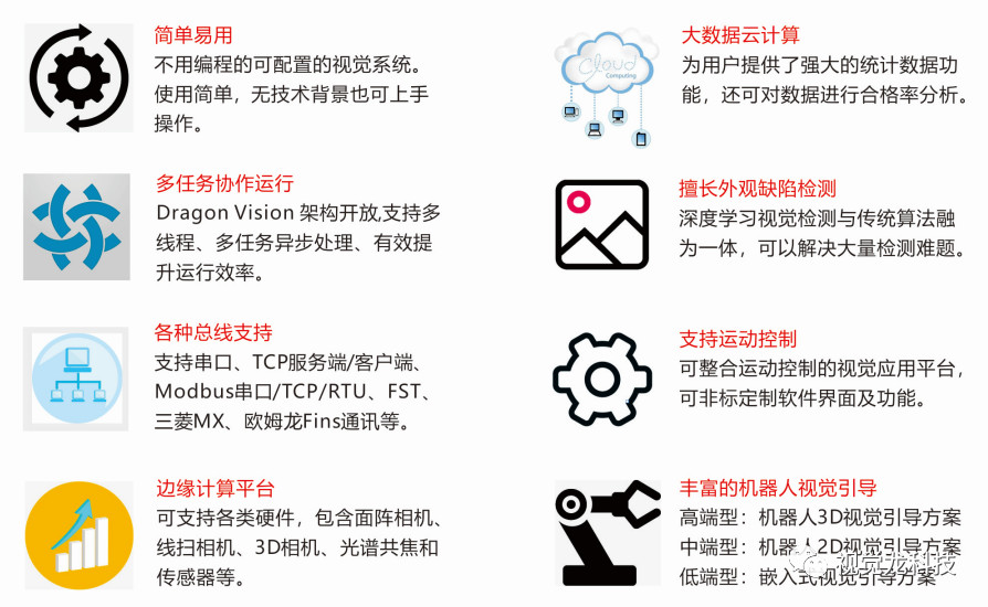本方案采用龍睿智能相機的專用型與機器人或模組配合,通過雙相機組合定位糾偏計算,同時發送多個放料位坐標給機械手或模組,將電池串正負極交錯排放到準確位置,排版完畢的產品流轉至下一道工序。加上本視覺方案后排版的工作效率是人工的3-5倍。